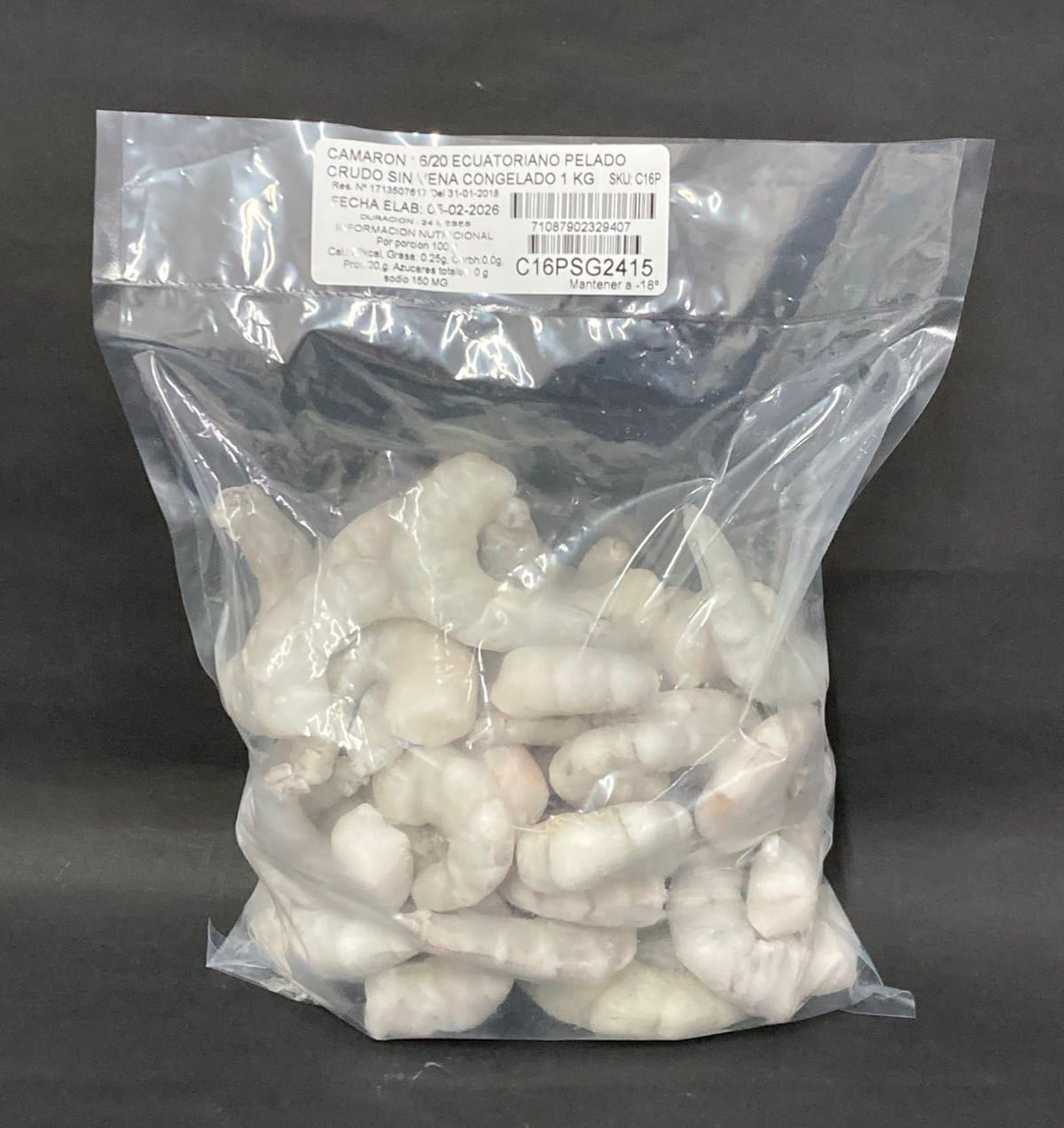 CAMARON 16/20 PELADO CRUDO SIN VENA ECUATORIANO 1 KG